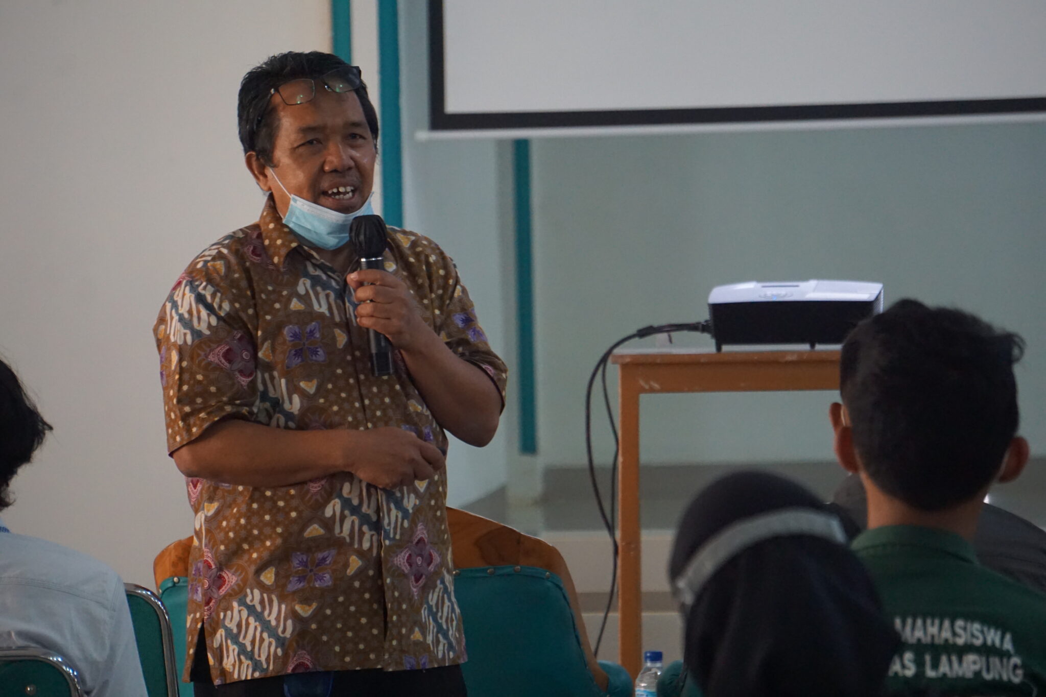 (Unila): Wakil Rektor Bidang Kemahasiswaan dan Alumni Universitas Lampung (Unila) Prof. Dr. Yulianto, M.S., membuka acara Bimbingan Teknis Lembaga Kemahasiswaan dan Unit Kegiatan Mahasiswa (UKM) Tingkat Universitas Lampung tahun 2021 di Aula Fakultas Pertanian, Selasa, 21 September 2021.