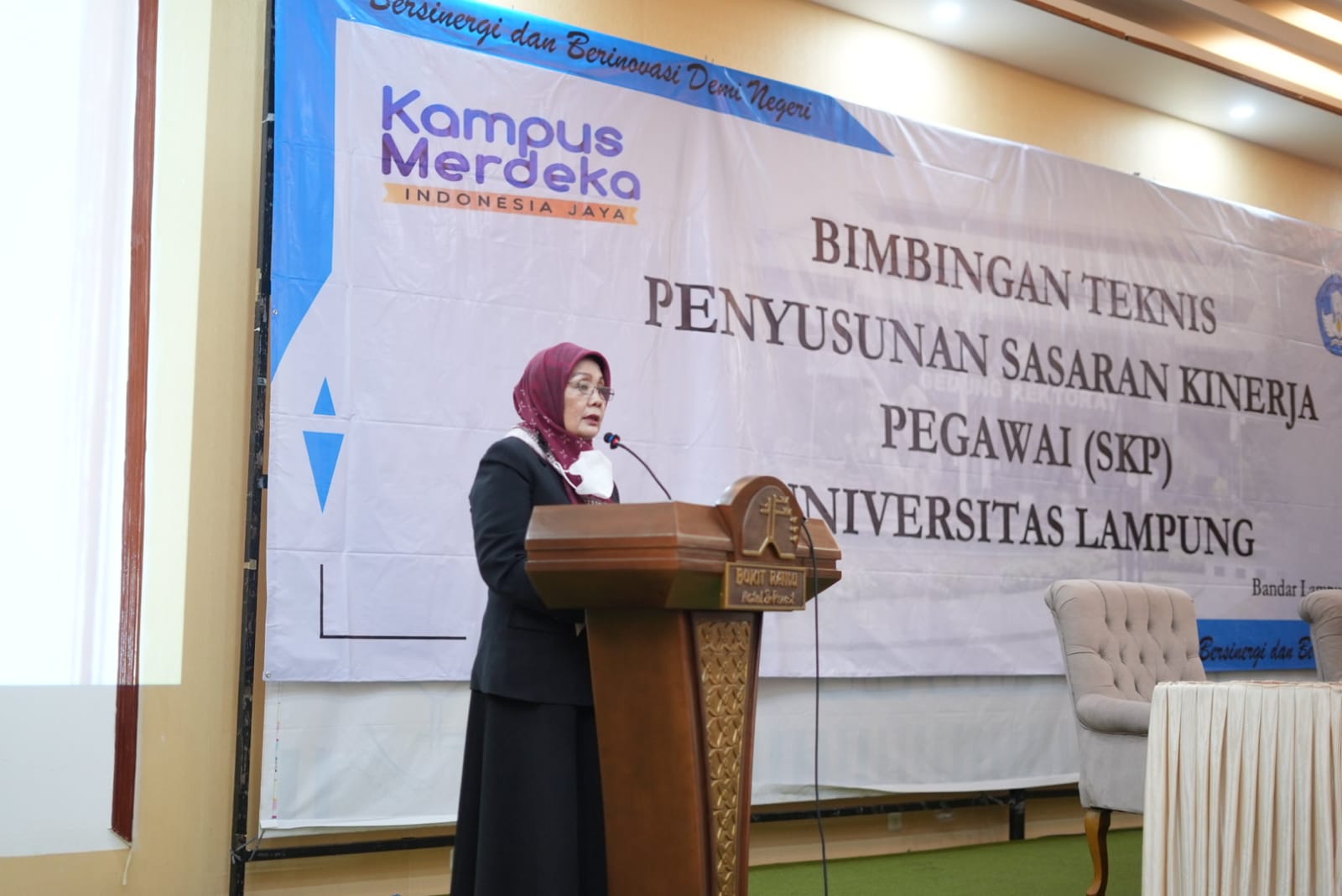 Kepala Biro Umum dan Keuangan Unila Ida Ropaida, S.E., M.M., dalam laporannya menyampaikan, kegiatan bimbingan teknis penyusunan SKP Unila diikuti 100-an peserta.