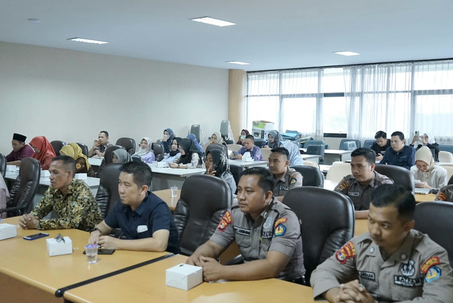 Kegiatan ini turut dihadiri oleh para kepala biro, para koordinator dan subkoordinator, komandan satpam, dan staf di lingkungan kampus setempat. [Daffa/Angel]