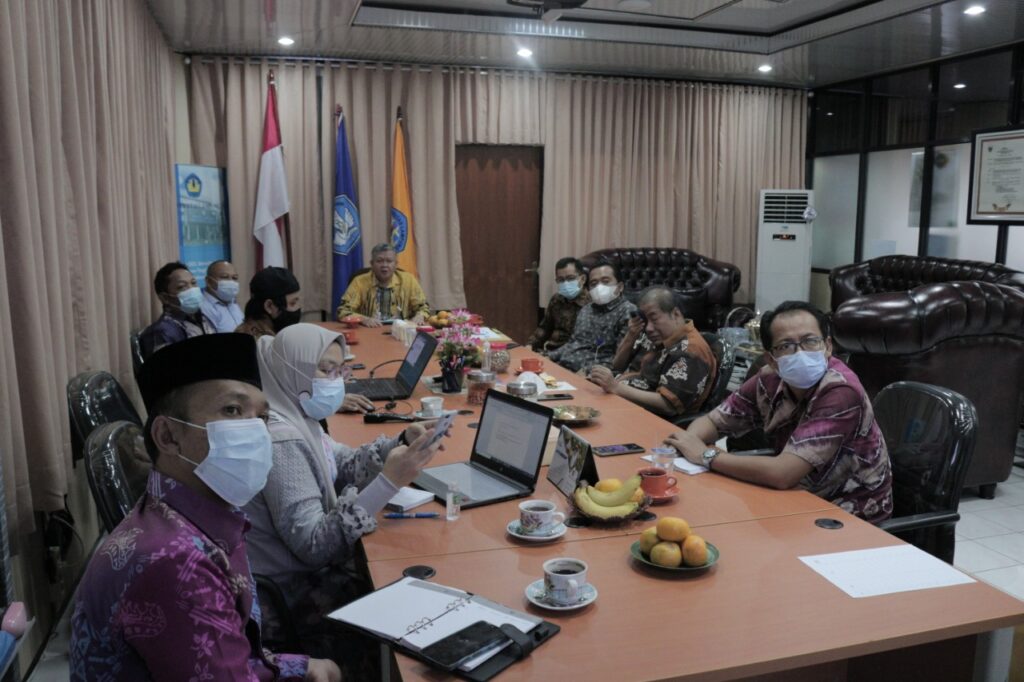(Unila): Wakil Rektor Bidang Perencanaan, Kerja sama dan TIK Universitas Lampung (Unila) Prof. Suharso memimpin rapat Brainstorming dan Penyusunan Program Kegiatan Website Unila Tahun 2021 versi Bahasa Inggris. Rapat diselenggarakan di ruang kerjanya, Jumat, 26 Februari 2021. []