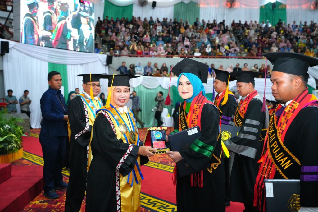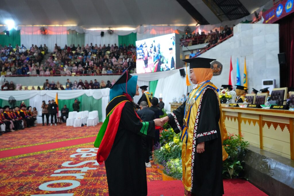 (Unila): Mimpi besar tak pernah mengkhianati usaha. Perjalanan akademik penuh tekad, riset berbulan-bulan, hingga syukur tiada henti mewarnai kisah Puan Mutia Ayunisa, mahasiswa Program Magister Teknologi Industri Pertanian Fakultas Pertanian (FP) Universitas Lampung (Unila), berhasil meraih predikat lulusan terbaik pertama program magister tingkat universitas dalam wisuda periode VI tahap I tahun akademik 2024/2025, di Gedung Serbaguna Unila pada Sabtu, 20 Juli 2025.