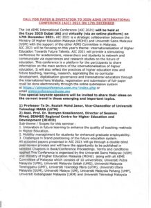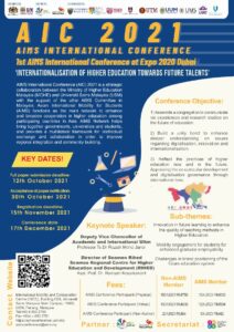 Pengumuman Call for Paper & Invitation to Join Aims International Conference (AIC) 2021 on 17th December Di update oleh Siti Nuryani - 12/11/2021 0 1191 (Unila): Call for Paper & Invitation to Join Aims International Conference (AIC) 2021 on 17th December. []