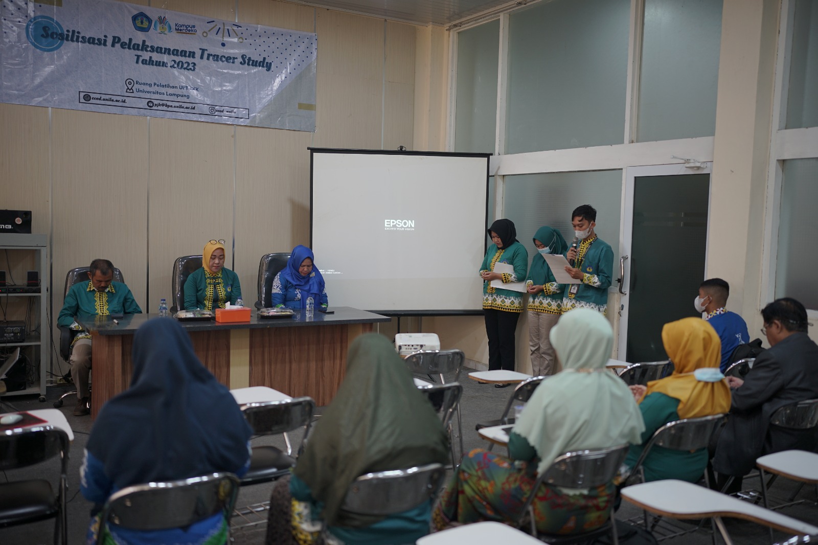 (Unila): UPT Pengembangan Karir dan Kewirausahaan (CCED) Universitas Lampung (Unila) menyelenggarakan Sosialisasi Pelaksanaan Tracer Study Tahun 2023, Kamis, 23 Ferbuari 2023.