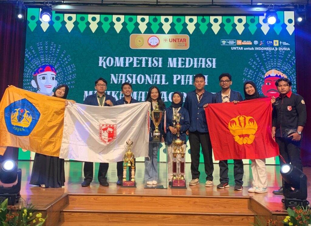 (Unila): Tim delegasi mahasiswa Fakultas Hukum (FH) Universitas Lampung (Unila) kembali menorehkan prestasi gemilang dengan meraih Juara Umum untuk ketiga kalinya di Kompetisi Mediasi Tingkat Nasional Piala Mahkamah Agung RI Ke-VI Tahun 2025 yang berlangsung pada 8-10 Mei 2025 di Universitas Tarumanagara, Jakarta.