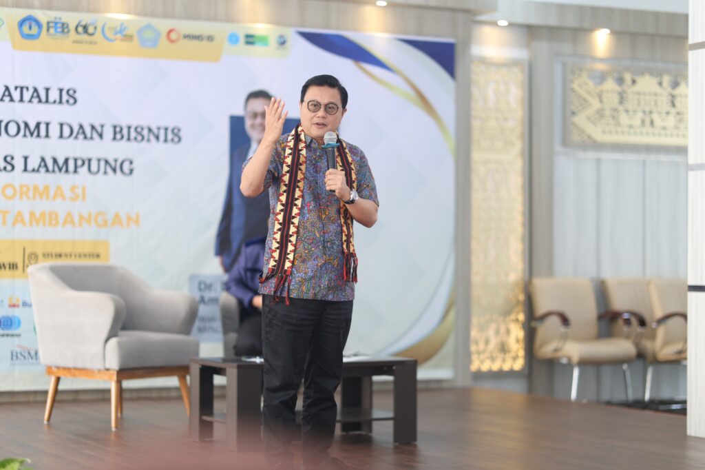 Dies Natalis FEB Unila menghadirkan pemateri utama Dr. Dany Amrul Ichdam, S.E., M.Sc., selaku Wakil Direktur Utama MIND ID, yang dipandu Ketua KAFE Unila, Dr. Edarwan, S.E., M.Si.