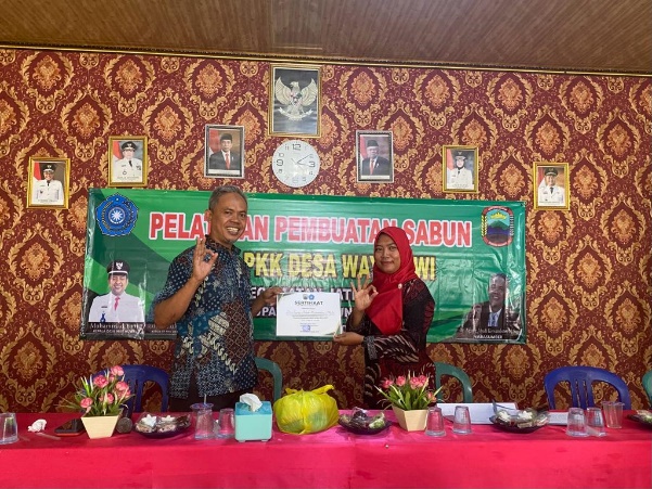 Pelatihan ini bertujuan untuk memberikan wawasan mengenai peluang usaha dan keterampilan pembuatan sabun cuci piring. Pelatihan ini diikuti perangkat desa dan ibu-ibu PKK Desa Wayhuwi, Kecamatan Jati Agung, Lampung Selatan.