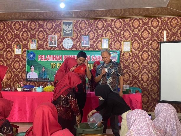 Pelatihan ini dilaksanakan guna meningkatkan pengetahuan masyarakat khususnya para ibu rumah tangga tentang pembuatan sabun cuci piring yang mudah dan dapat dilakukan sendiri di rumah.