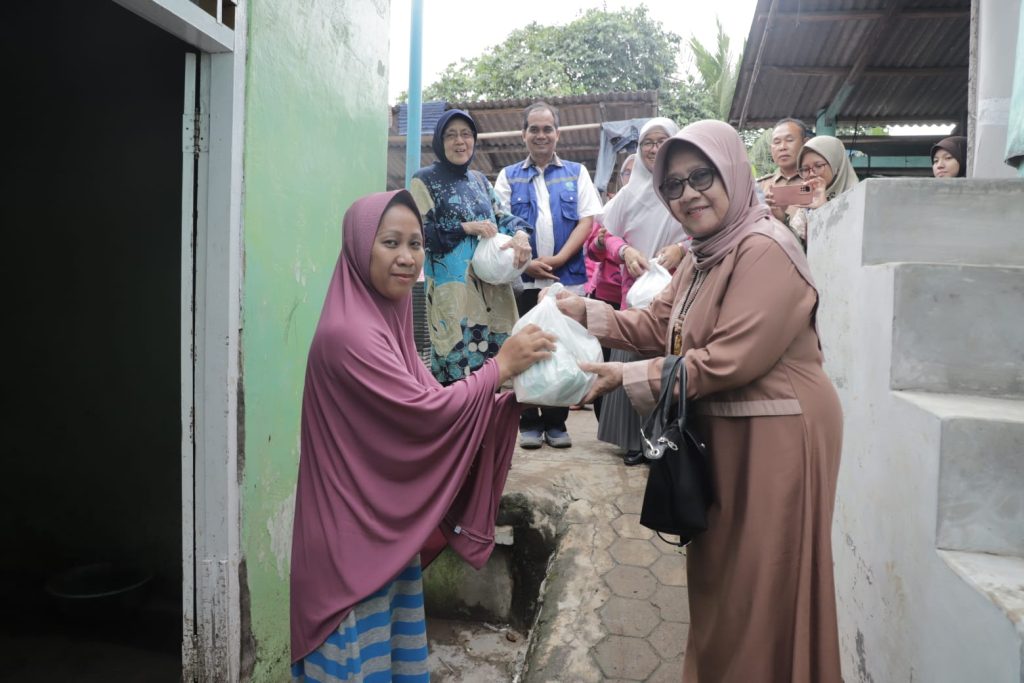(Unila): Darma Wanita Persatuan (DWP) Universitas Lampung (Unila) memberikan 100 paket sembako dan nasi kotak kepada warga korban banjir di RT 10, Kelurahan Kota Karang, Kota Bandar Lampung, pada Senin sore, 20 Januari 2025.