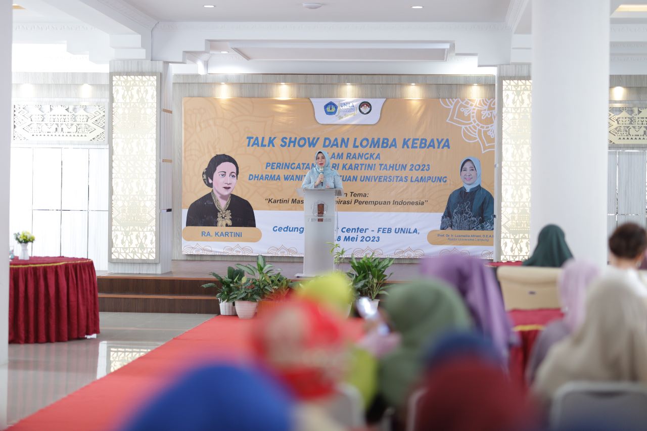 (Unila): Dalam rangka memperingati Hari Kartini tahun 2023, Darma Wanita Persatuan (DWP) Universitas Lampung (Unila) menggelar talk show dan lomba fashion show dengan tema “Kartini Masa Kini Inspirasi Perempuan Indonesia”.