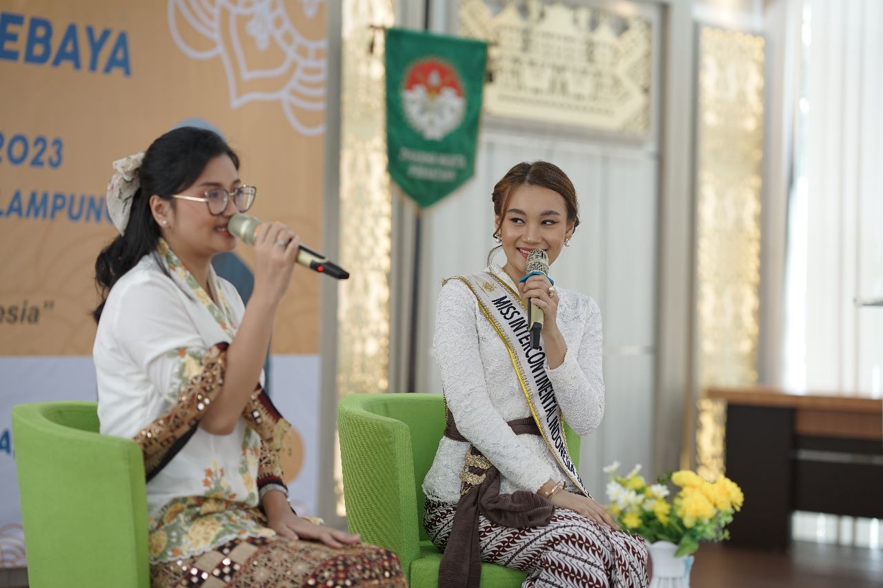 Talk show menghadirkan narasumber Miss Intercontinental 2022 Dita Fatimatuzzahra yang merupakan mahasiswi Universitas Lampung jurusan Hubungan Internasional.