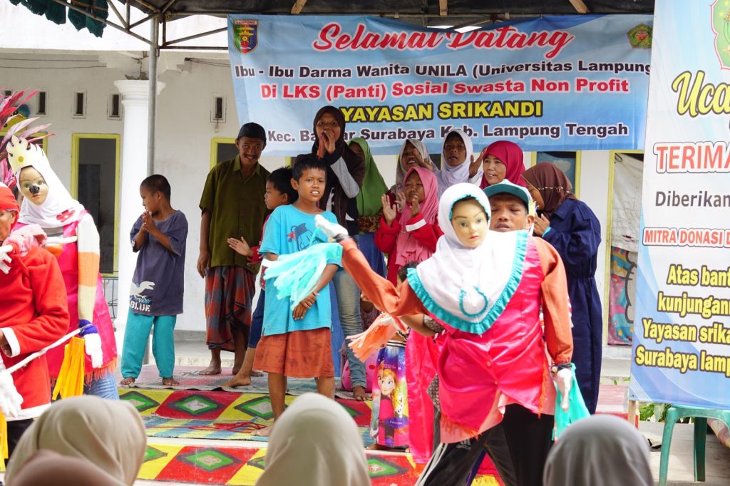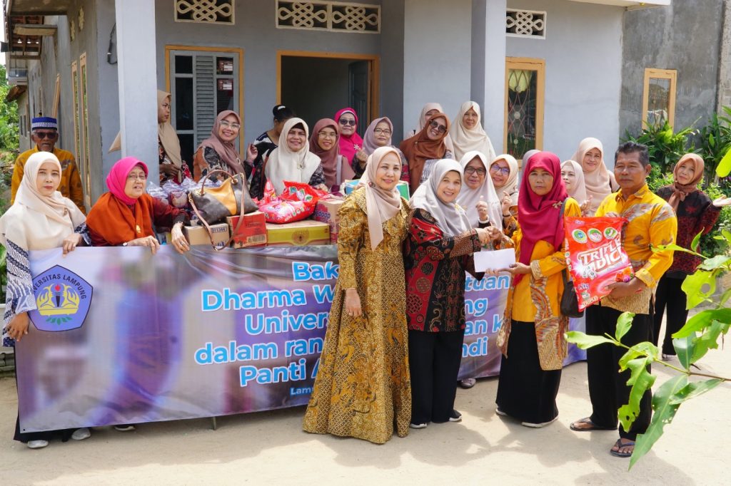 (Unila): Darma Wanita Persatuan (DWP) Universitas Lampung (Unila) berbagi kebahagiaan dengan yatim piatu dan duafa asuhan Panti Sosial Srikandi, di Kampung Subang Jaya, Kecamatan Bandar Surabaya, Lampung Tengah, Jumat, 16 Agustus 2024.