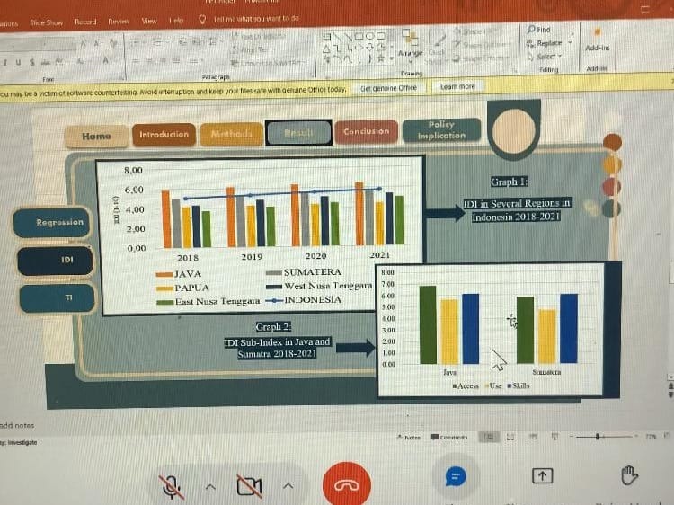 Dari hasil penelitian tersebut, mereka menemukan suatu keunikan, yaitu ternyata perkembangan Pulau Jawa dan Sumatra justru menggerus atau memiliki dampak negatif pada perekonomian. Hal tersebut terjadi dikarenakan gencarnya perkembangan teknologi tidak dibarengi dengan penggunaan yang masif dan produktif oleh masyarakat.