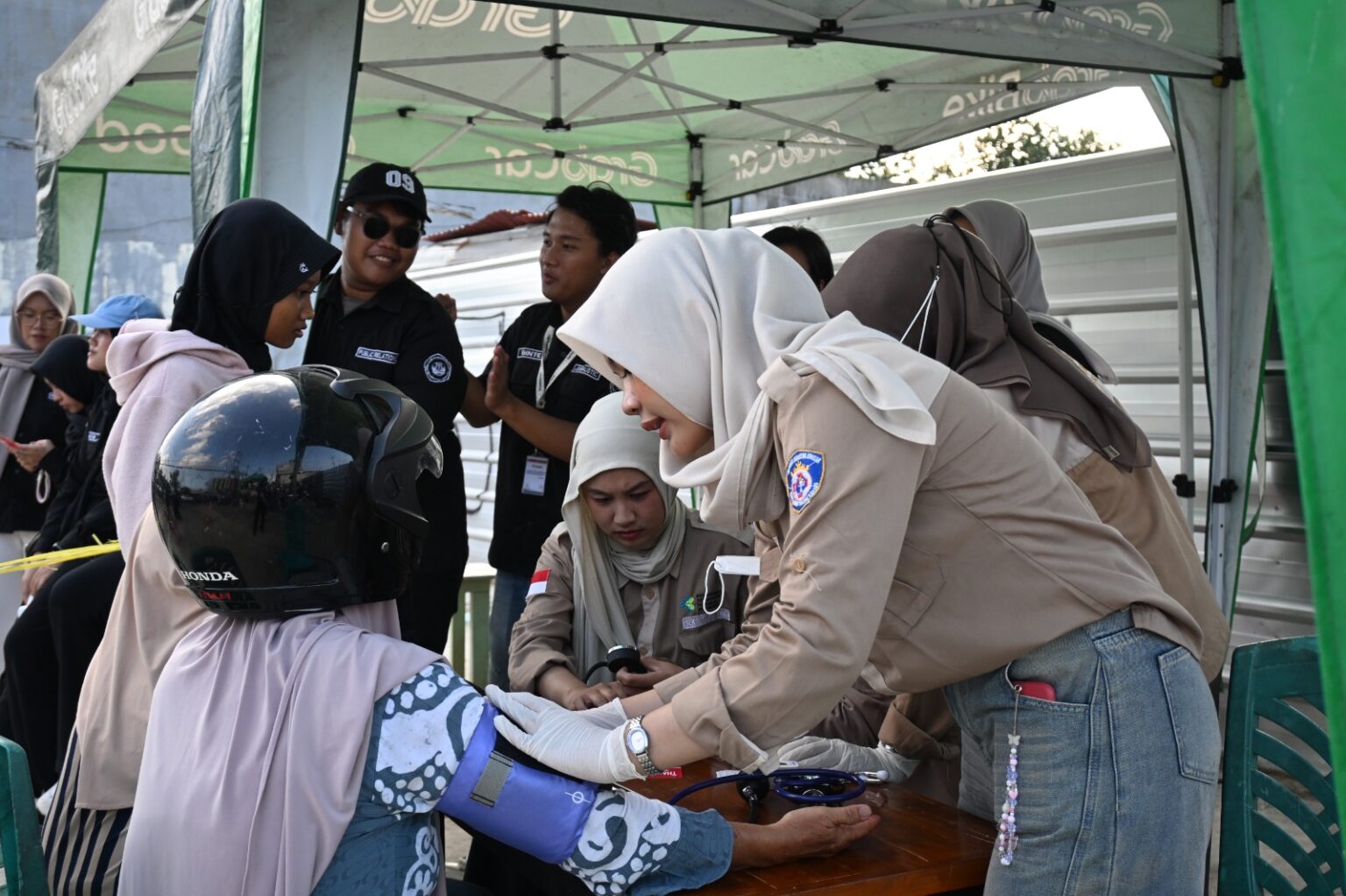 The health services offered included blood pressure checks, blood sugar tests, cholesterol assessments, weight and height measurements. This initiative was supported by healthcare professionals from Poltekkes Tanjung Karang, who established a health booth at the event location.
