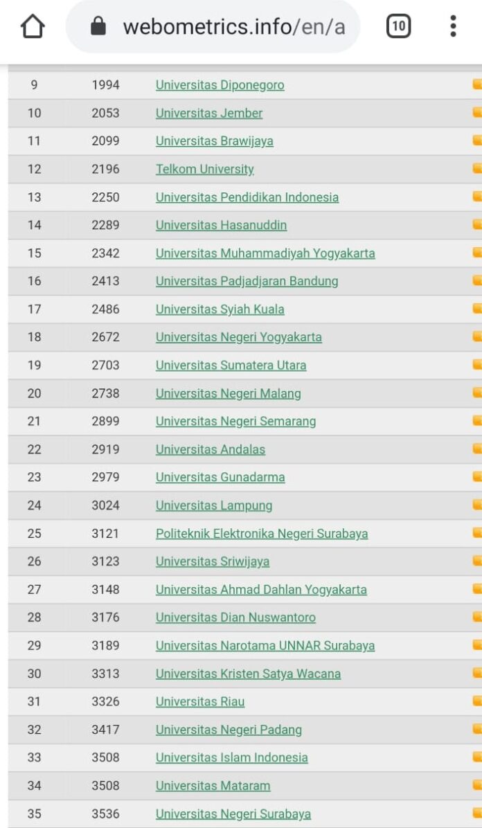 (Unila): Starting a new year, the University of Lampung (henceforth Unila) once again attained outstanding achievement. Unila’s Webometrics ranking has risen six positions, going from 30th place in July 2020 to 24th in January 2021. This means that the university is ranked 24th among Indonesia’s top 100 public and private universities.