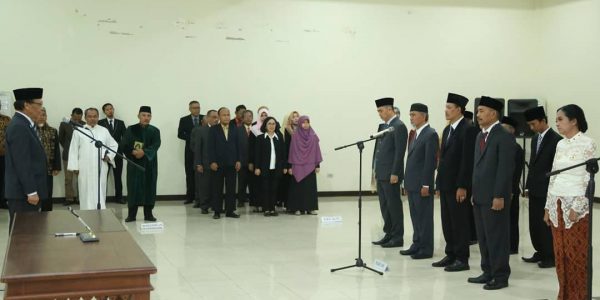 (Unila): Rector of the University of Lampung (Unila) Prof. Hasriadi Mat Akin, M.P., inaugurated eight new officials. The event took place in the inauguration room on the 4th floor of Rectorate Building on Thursday (05/10/2019).