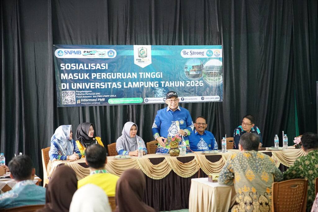 (Unila): The University of Lampung (Unila) held a socialization event of the 2026 Unila new student admissions (PMB), on Thursday, February 5, 2026, in the Hall of the Pringsewu 2 State Senior High School Building.
