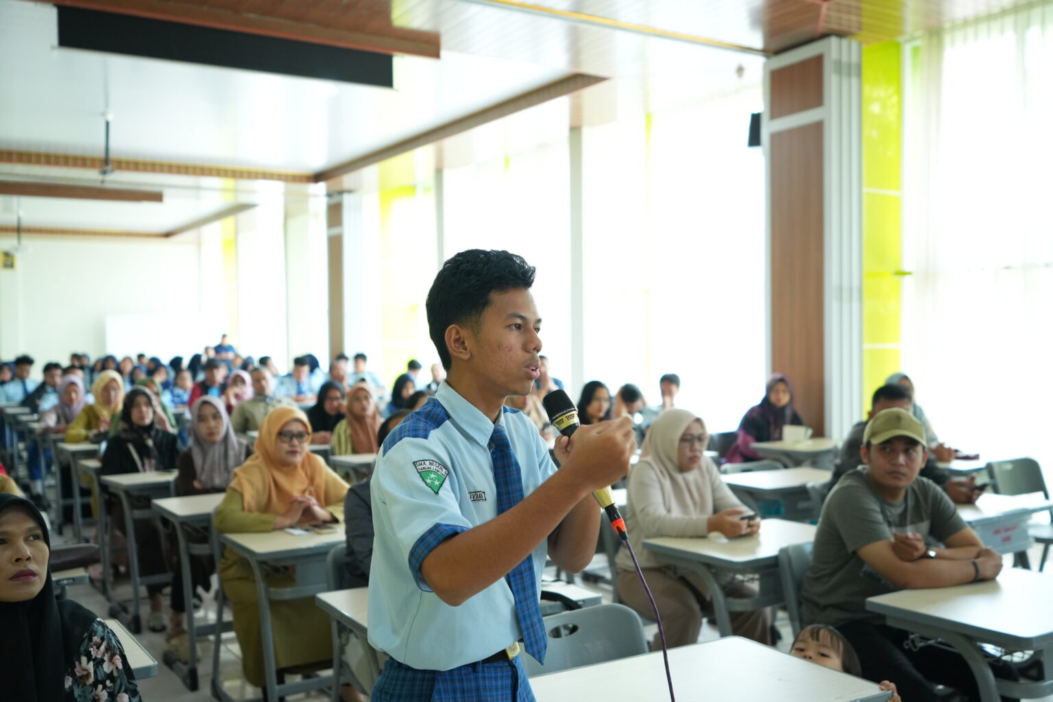 The information session was opened by the PMB Unila Public Relations Coordinator, Dr. Muhammad Komarudin, S.T., M.T. Also present at this event were the Unila PMB Team, Ir. Ing. Hery Dian Septama, S.T., IPM., Principal of SMA Negeri 5 Bandar Lampung Linda Krisnawati, M.Pd., parents, and students of SMA Negeri 5 Bandar Lampung.