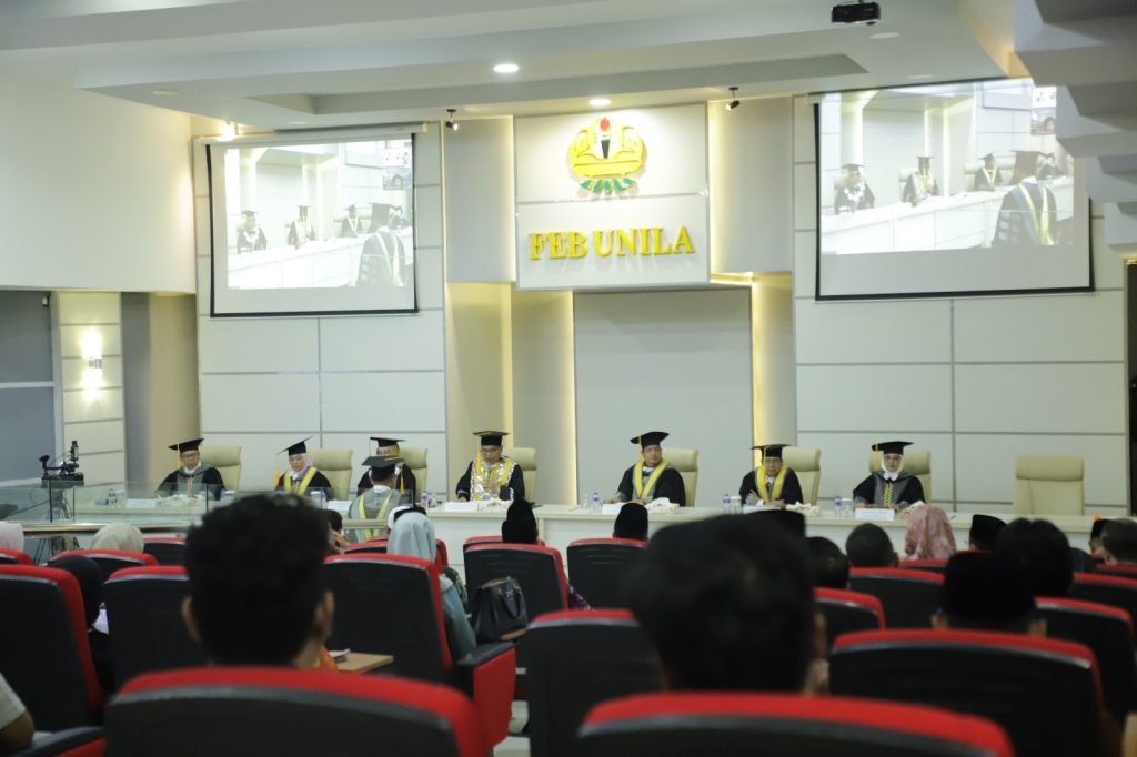 Sidang terbuka dibuka oleh Wakil Rektor Bidang Keuangan dan Umum, Dr. Habibullah Jimad, S.E., M.Si., yang juga bertindak sebagai Ketua Tim Penguji. Kegiatan tersebut turut dihadiri oleh Wakil Dekan Bidang Kemahasiswaan dan Alumni FEB Unila, Dr. Neli Aida, S.E., M.Si., serta sejumlah penguji, di antaranya Sekretaris Penguji Prof. Yuliansyah, S.E., M.S.A., Ph.D., Akt., dan Tim Penguji Internal yang terdiri dari Prof. Dr. Toto Gunarto, S.E., M.Si., serta Dr. Asih Murwiati, S.E., M.E.