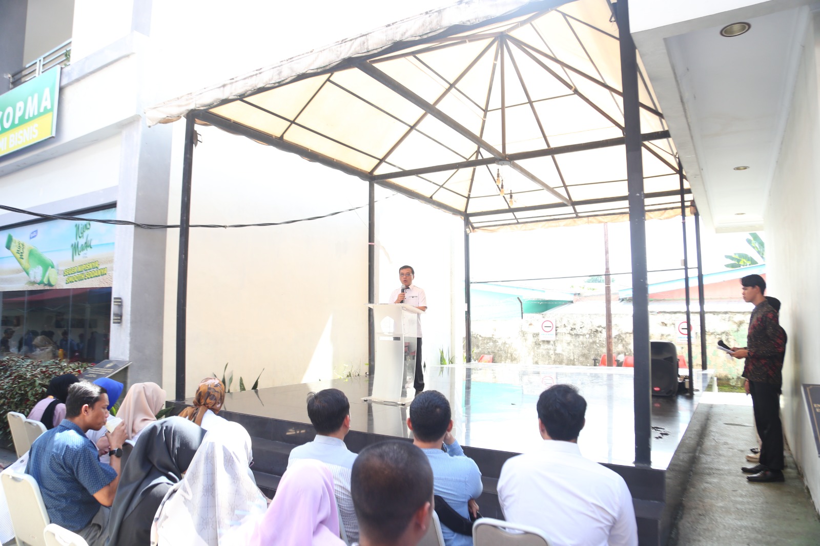 Wakil Dekan Bidang Umum dan Keuangan FEB Unila Dr. Sudrajat, S,E., M.Acc., Ak., CA., saat membuka acara mengapresiasi Market Days sebagai bentuk pembelajaran softskill untuk mahasiswa FEB Unila dan berencana membuka kembali kegiatan serupa semester depan.