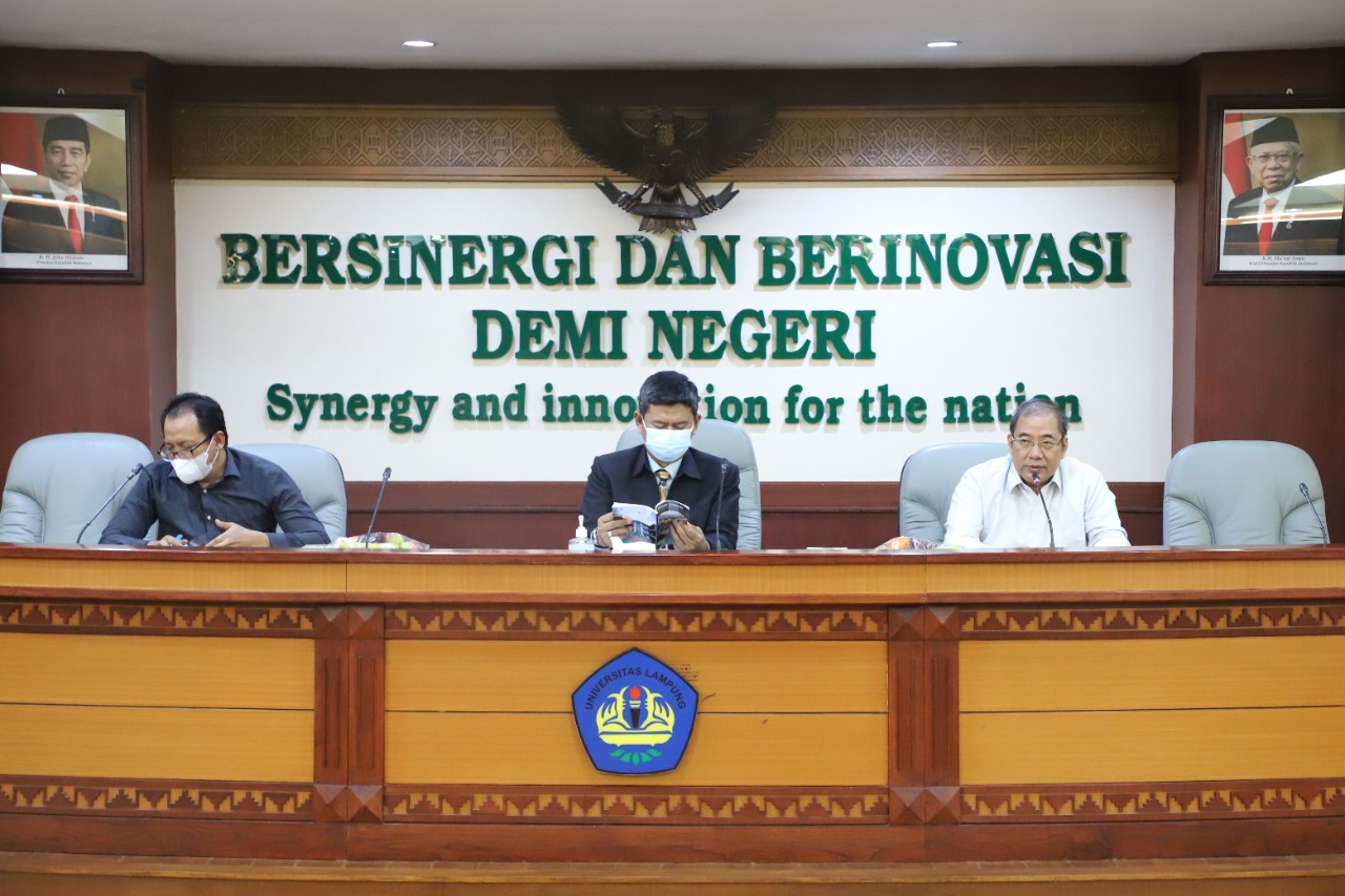 Kegiatan yang dilaksanakan di ruang sidang utama Rektorat Unila ini dihadiri langsung Wakil Rektor Bidang Umum dan Keuangan Prof. Dr. dr. Asep Sukohar, S.Ked., M.Kes., jajaran dekan dan wakil dekan di lingkungan Unila, serta kepala BPHM dan tim penyusun buku profil Unila 2022.