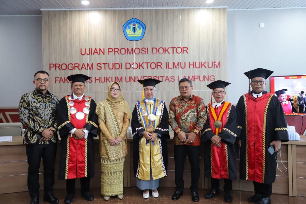 (Unila): Promovendus Yulia Neta resmi menyandang gelar doktor usai melaksanakan sidang ujian terbuka promosi doktor yang berlangsung di gedung Pascasarjana Fakultas Hukum (FH) Universitas Lampung (Unila), pada Rabu, 9 Juli 2025.