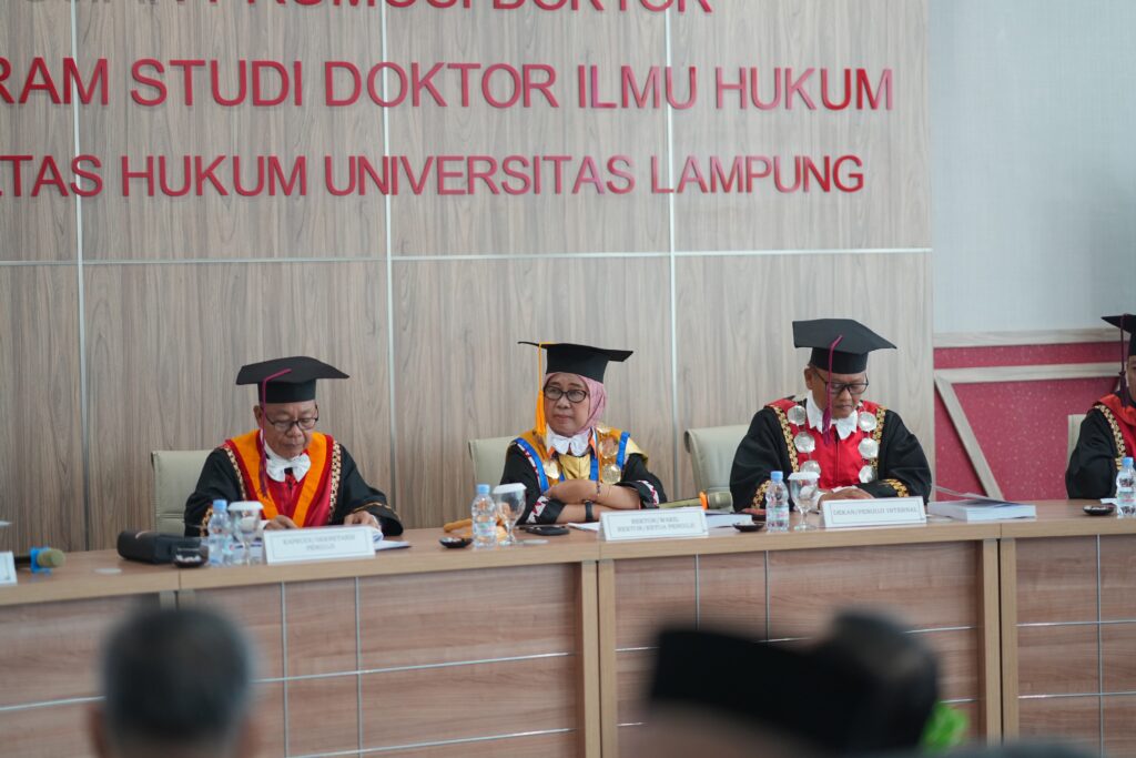 Sejumlah penguji antara lain Penguji Eksternal Dr. Sukaca, S.H., M.Si., M.H., dan Sekda Provinsi Lampung Dr. Marindo Kurniawan, S.T., M.M.., Penguji Internal Dr. M. Fakih, S.H., M.S., Dr. Muhtadi, S.H., M.H., dan Agus Triono, S.H., M.H., Ph.D.