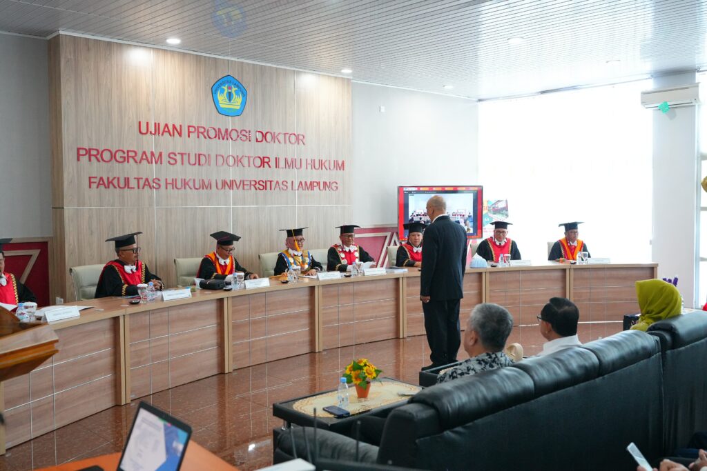 Doktor Erman Syari, dinyatakan lulus gelar doktor, menjadi lulusan ke-36 di Program Studi Doktor Ilmu Hukum, FH Unila setelah mempresentasikan disertasi berjudul “Pengawasan Produk Hukum Daerah dalam Mewujudkan Peraturan Daerah yang Baik”.