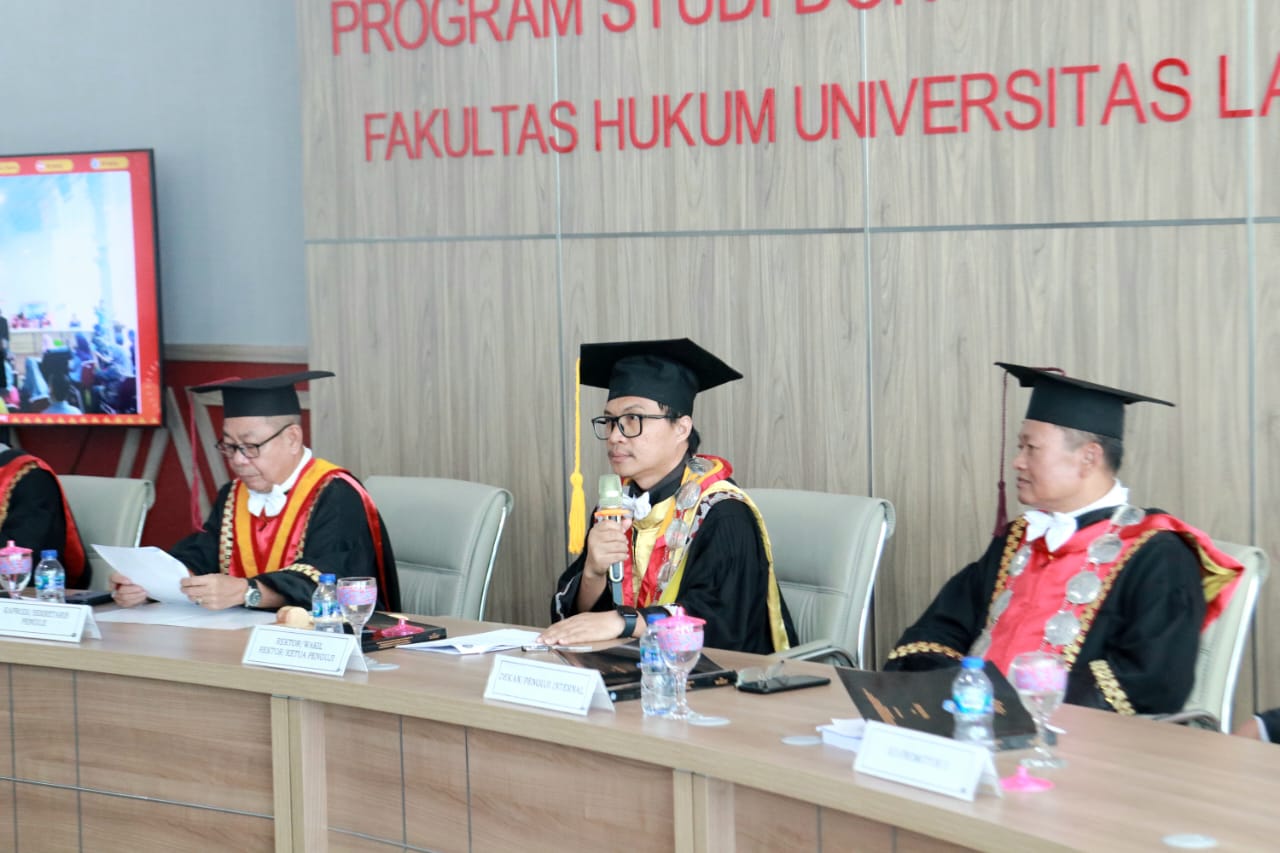 (Unila): Fakultas Hukum (FH) Universitas Lampung (Unila) menggelar ujian terbuka promosi doktor Ilmu Hukum di Gedung B FH Unila pada Selasa, 16 Januari 2023.