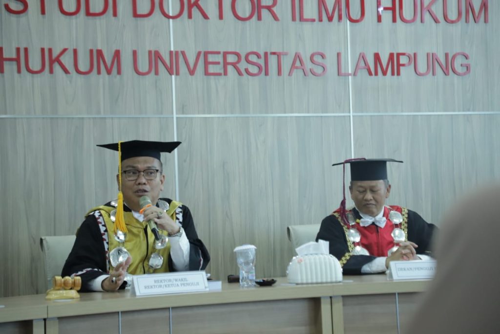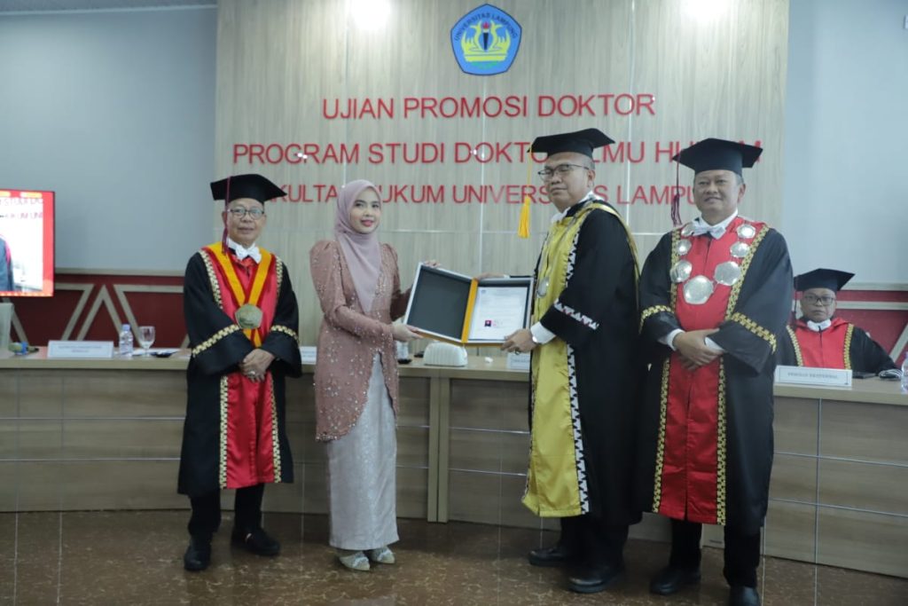 (Unila): Fakultas Hukum (FH) Universitas Lampung (Unila) kembali menyelenggarakan ujian terbuka promosi doktor pada Rabu, 9 Juli 2025. Promovendus Malicia Evendia berhasil mempertahankan disertasinya berjudul “Politik Hukum Inovasi Daerah dalam Penyelenggaraan Desentralisasi yang Akseleratif terhadap Pembangunan”.