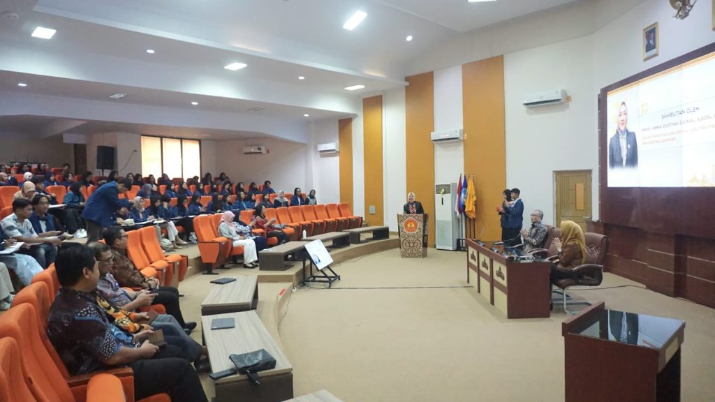 Kegiatan dihadiri Prof. Anna Gustina Zainal, S.Sos., M.Si., selaku Dekan FISIP Unila dan Ferry Ardiyanto, S.E., M.M., M.P.F., Ph.D., selaku Asisten Deputi Kerja Sama Ekonomi Multilateral, Kemenko Perekonomian sebagai pemberi sambutan.