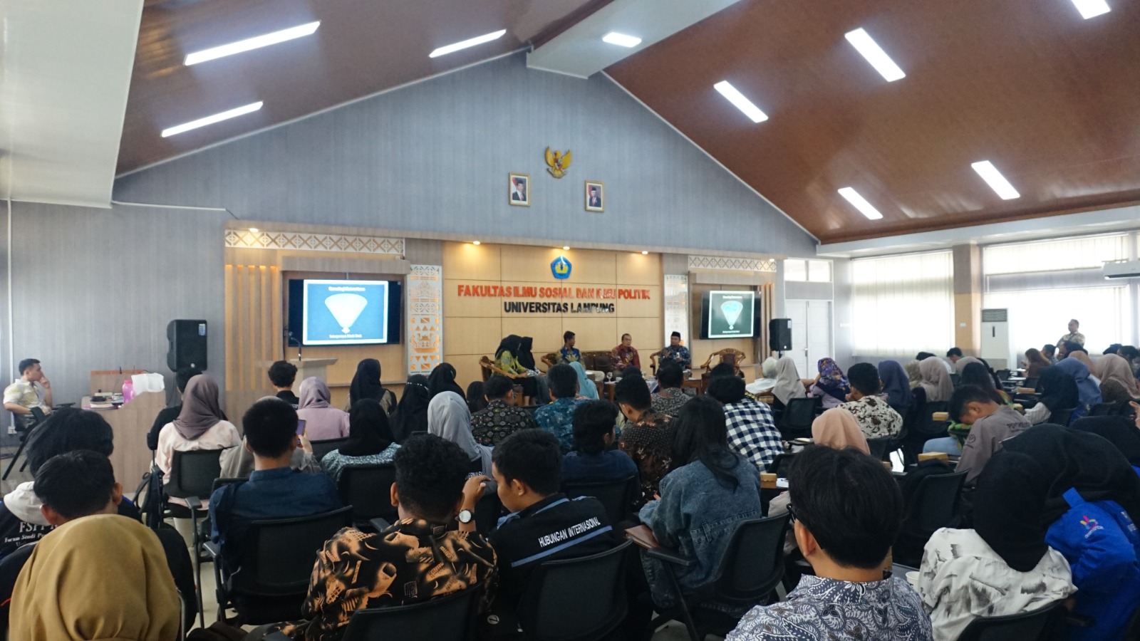 Kegiatan ini berlangsung di Gedung B 3.1 Hall FISIP Unila dan menghadirkan narasumber dari berbagai latar belakang.
