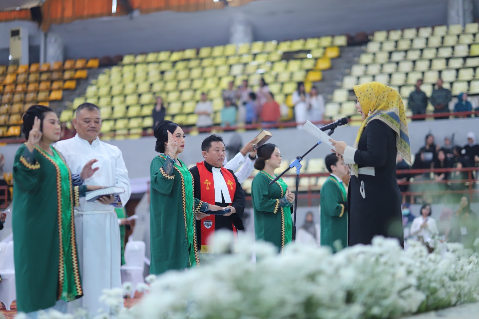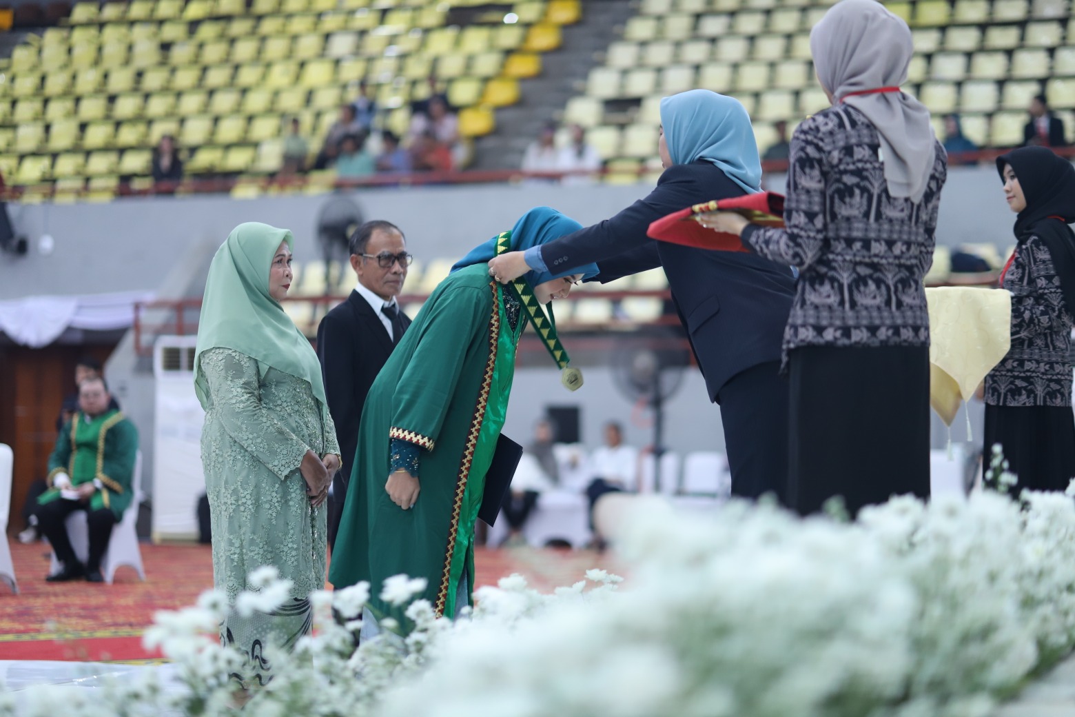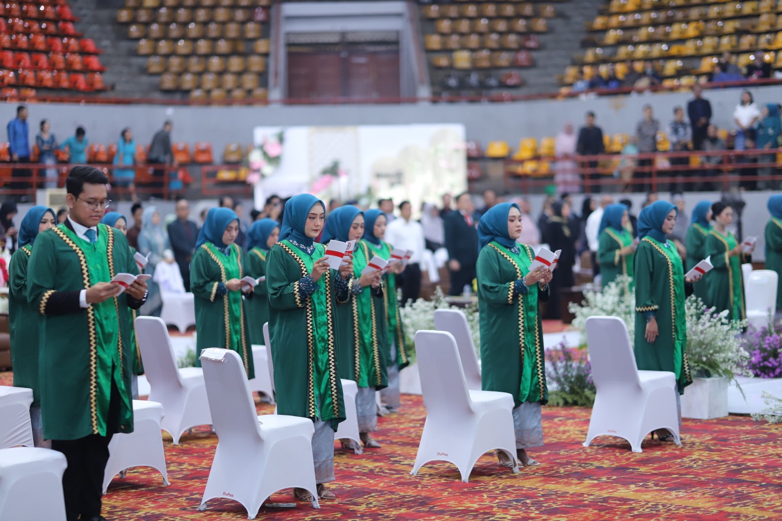 Dalam prosesi ini, 35 dokter diambil sumpahnya dan secara resmi disahkan sebagai dokter. Pengambilan sumpah dokter dipimpin Dekan FK Unila Dr. dr. Evi Kurniawati, S.Ked., M.Sc., didampingi rohaniwan, serta disaksikan sejumlah pejabat dan tokoh penting.