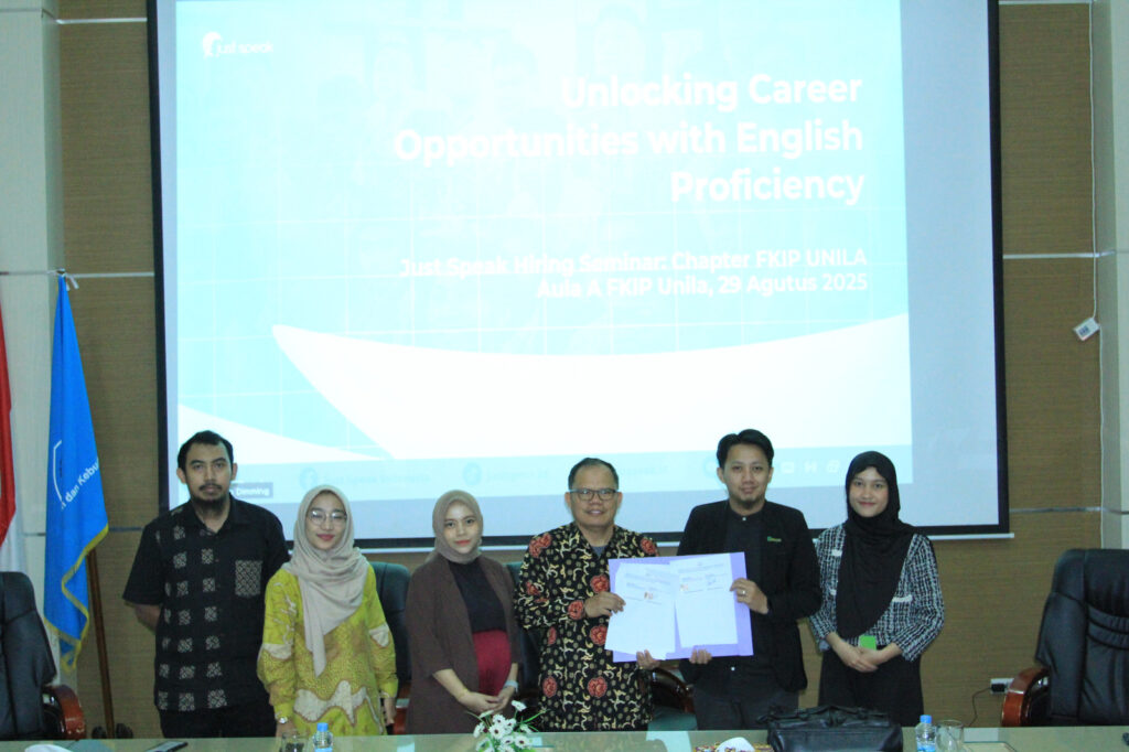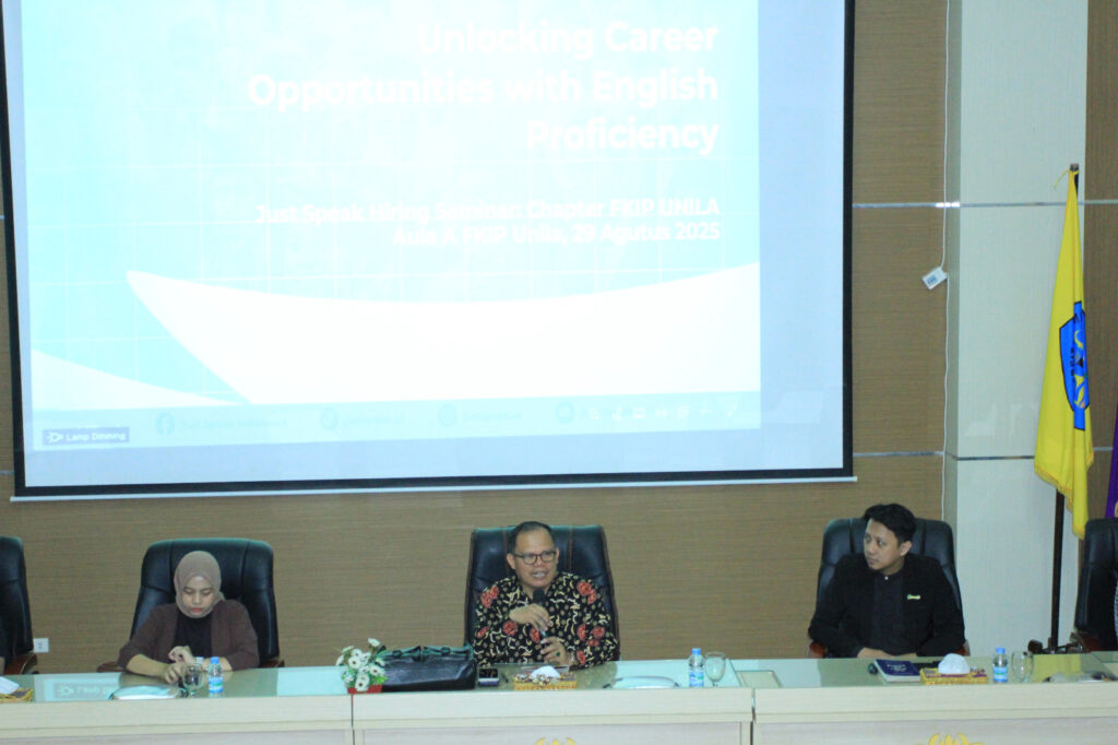 “Kami sangat mengapresiasi Just Speak Indonesia yang telah menginisiasi seminar karier ini. Kegiatan ini menjadi langkah strategis untuk mempersiapkan mahasiswa FKIP Unila, khususnya di bidang Pendidikan Bahasa Inggris, agar memiliki kompetensi yang unggul ketika memasuki dunia kerja. Kami juga berharap kerja sama ini dapat dikembangkan lebih lanjut, termasuk pada program magang dan peluang lainnya,” jelasnya.
