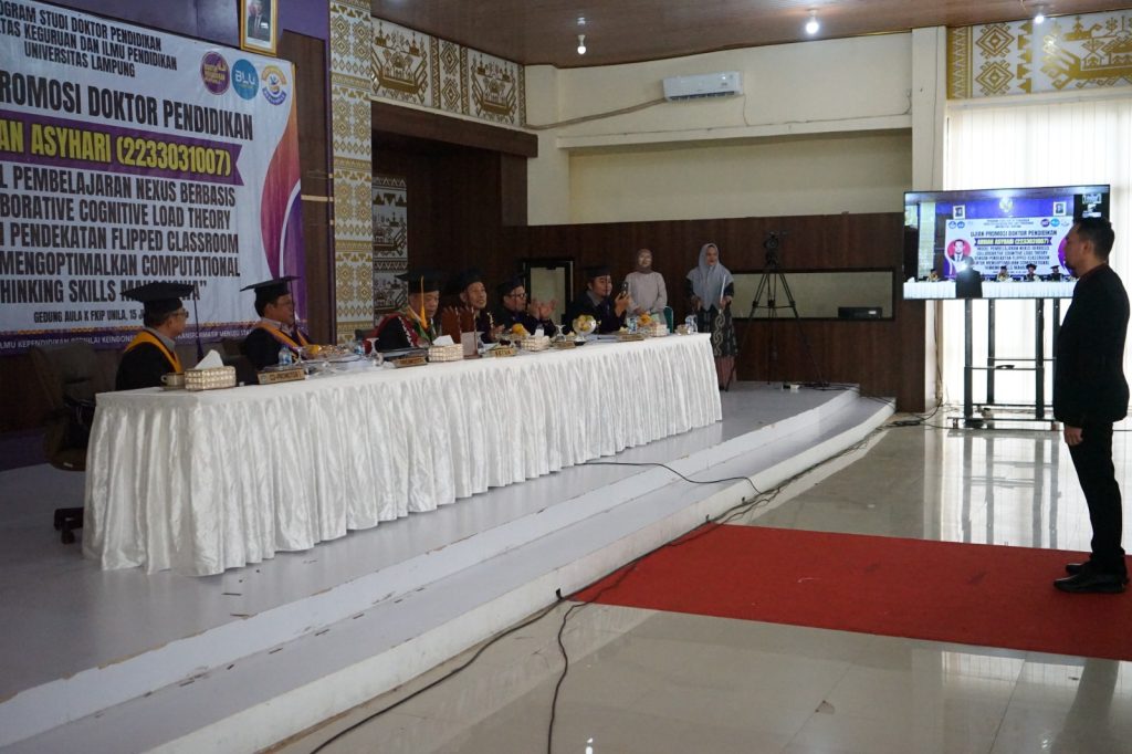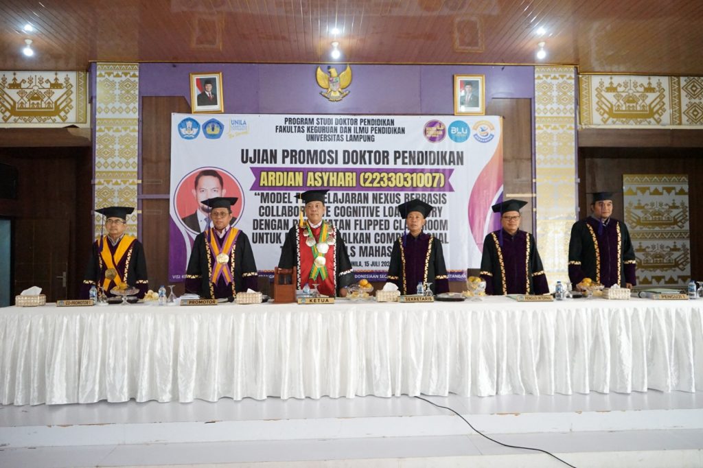 (Unila): Fakultas Keguruan dan Ilmu Pendidikan (FKIP) Universitas Lampung (Unila) menggelar ujian terbuka promosi doktor bagi mahasiswa Program Studi S-3 Pendidikan, Ardian Asyhari, pada Selasa, 15 Juli 2025. Kegiatan berlangsung di Aula K FKIP Unila.