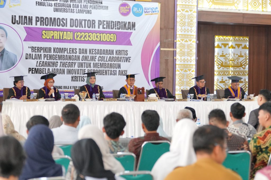 Dengan disertasi ini, Supriyadi berhasil meraih gelar doktor ke-13 bidang pendidikan di Universitas Lampung. Pencapaian ini diharapkan dapat memberikan kontribusi signifikan bagi pengembangan pembelajaran, serta memperkaya khazanah pengetahuan mengenai pembelajaran yang berorientasi pada aksi kritis. [Magang/Cindy Adelia]