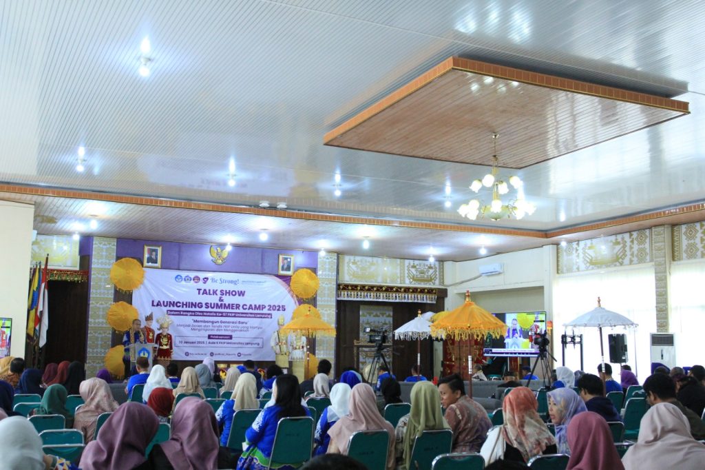 Peluncuran Summer Camp 2025 diselenggarakan di Aula K FKIP Unila pada Kamis, 30 Januari 2025. Kegiatan dihadiri pimpinan universitas dan fakultas, di antaranya Wakil Rektor Bidang Keuangan dan Umum Dr. Habibullah Jimad, S.E., M.Si., Wakil Rektor Bidang Kemahasiswaan dan Alumni Prof. Dr. Sunyono, M.Si., dan Ketua Senat Unila Prof. Dr. Herpratiwi, M.Pd.