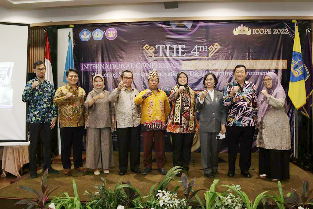 (Unila): FKIP Universitas Lampung (Unila) sukses menggelar seminar internasional The 4th Internasional Conference on Progressive Education (The 4th ICOPE), secara hybrid melalui zoom dan offline di Hotel Bukit Randu, Bandarlampung, Sabtu, 15 Oktober 2022.