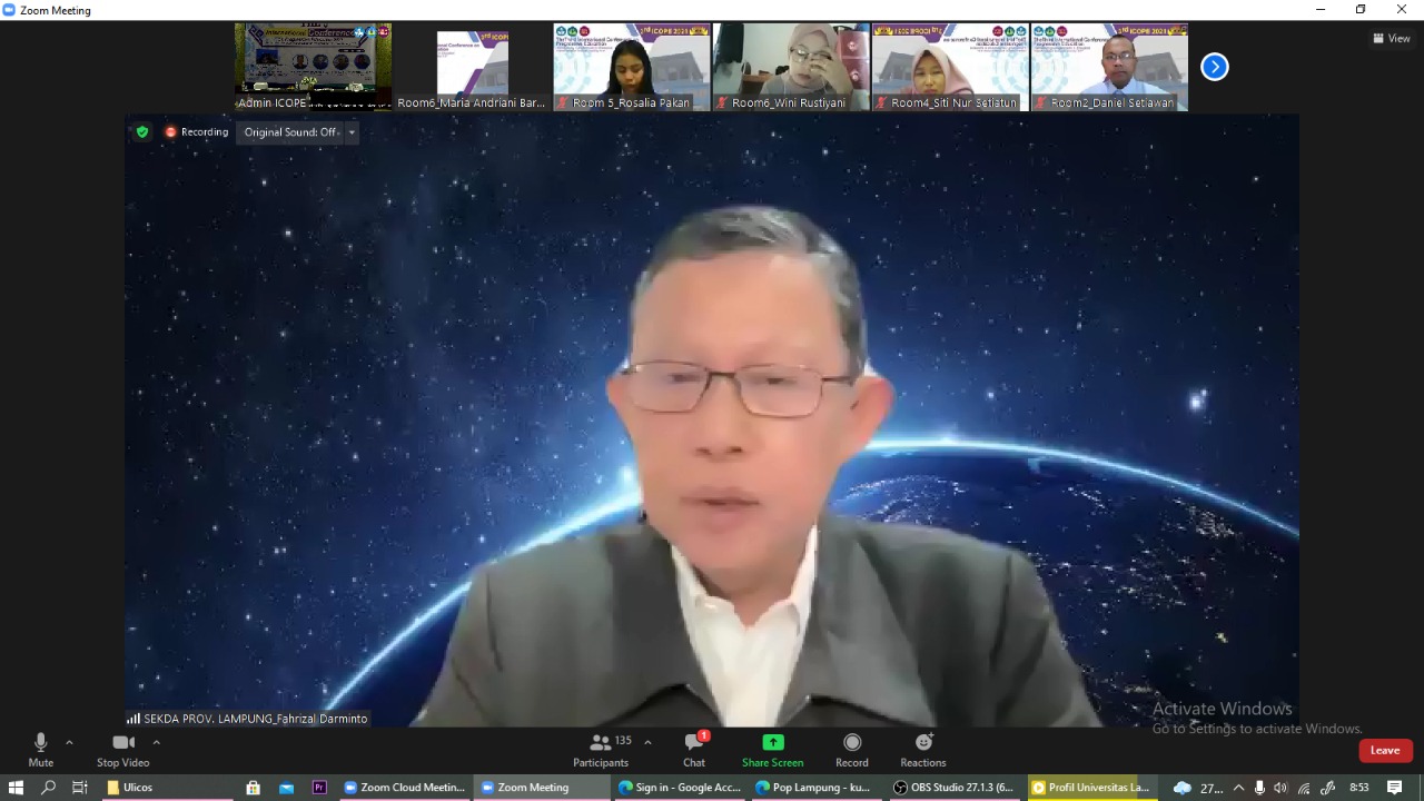 (Unila): Fakultas Keguruan dan Ilmu Pendidikan (FKIP) Universitas Lampung (Unila) sukses menggelar konferensi internasional “The 3rd International Conference of Education (ICoPe) 2021” bertajuk “Harmonizing Competencies in Education towards Society 5.0”.