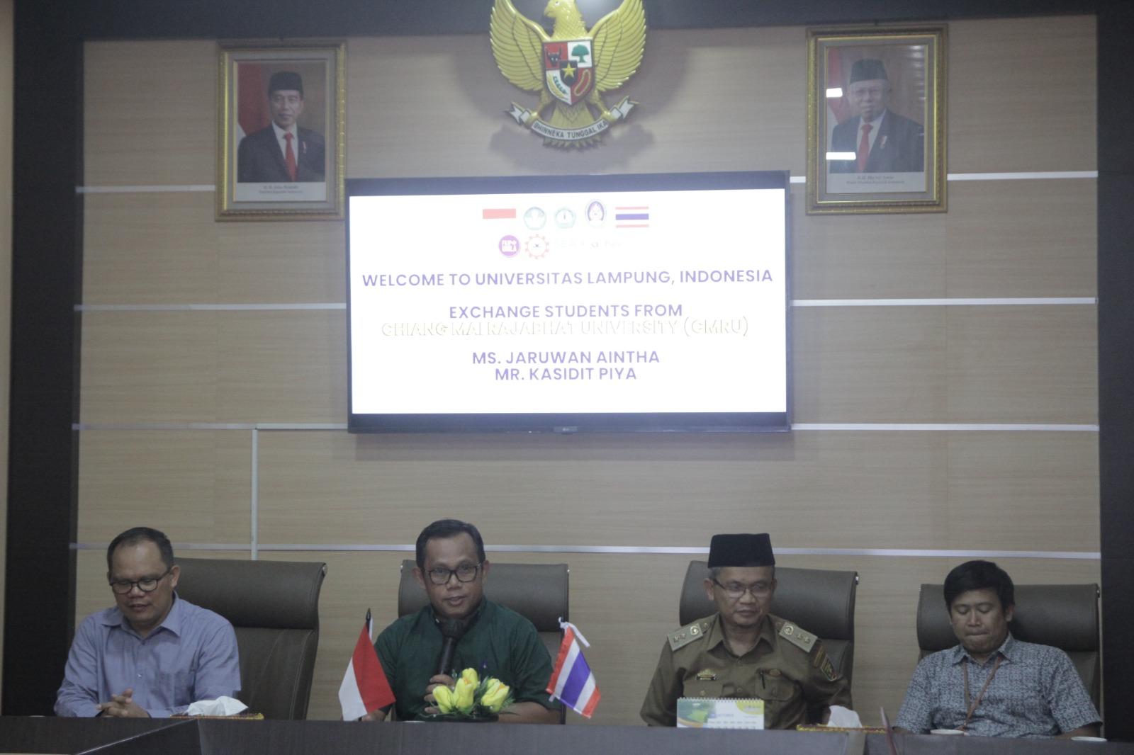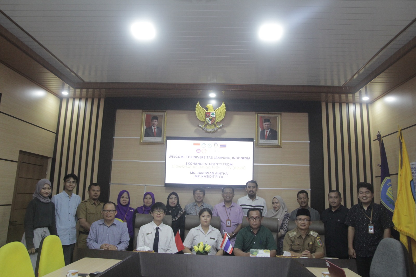 Jaruwan Aintha dan Kasidit Piya diterima oleh Dekan Prof. Dr. Sunyono, M.Si., beserta para Wakil Dekan, Ketua bagian Tata Usaha, para Sub Koordinator, para ketua Ketua dan Sekretaris Jurusan.