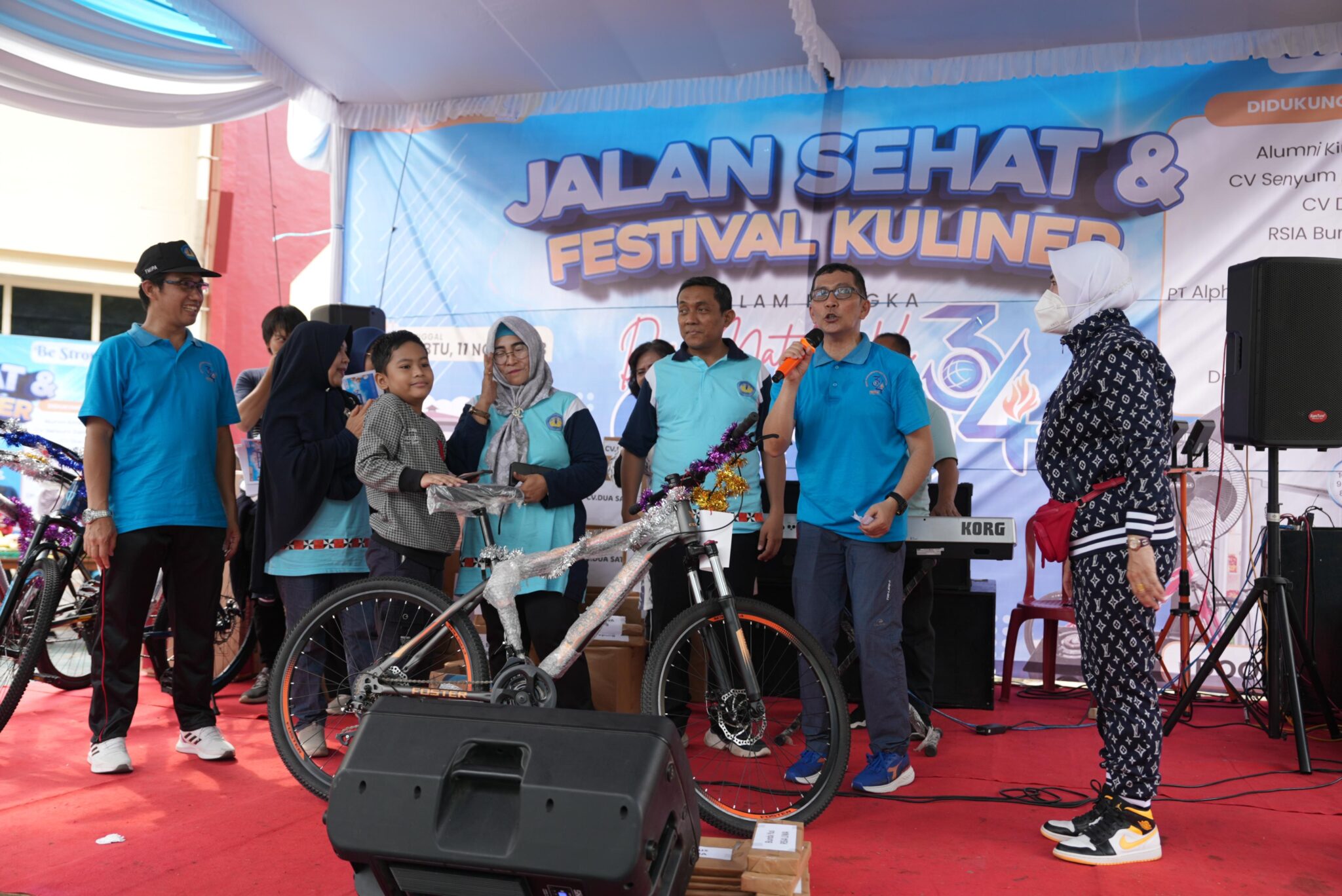 Selain jalan sehat dan festival kuliner, perayaan dies natalis FMIPA dimeriahkan dengan berbagai kegiatan sosial, seperti donasi untuk Palestina, lomba hias tumpeng, undian hadiah, donor darah, pembagian sembako, dan pemberian beasiswa dari Ikatan Alumni (IKA) FMIPA. [Magang_Agatha Monica Silaban]