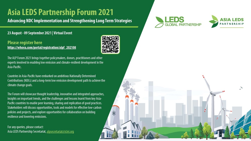 Pengumuman Forum Asia LEDS ALP 2021 Di update oleh Siti Nuryani - 23/08/2021 0 1195 (Unila): Berikut disampaikan informasi penyelenggaraan Forum Asia Low Emission Development Strategies (LEDS) Partnership (ALP) 2021 yang akan dihelat pada 23 Agustus hingga 9 September 2021. []