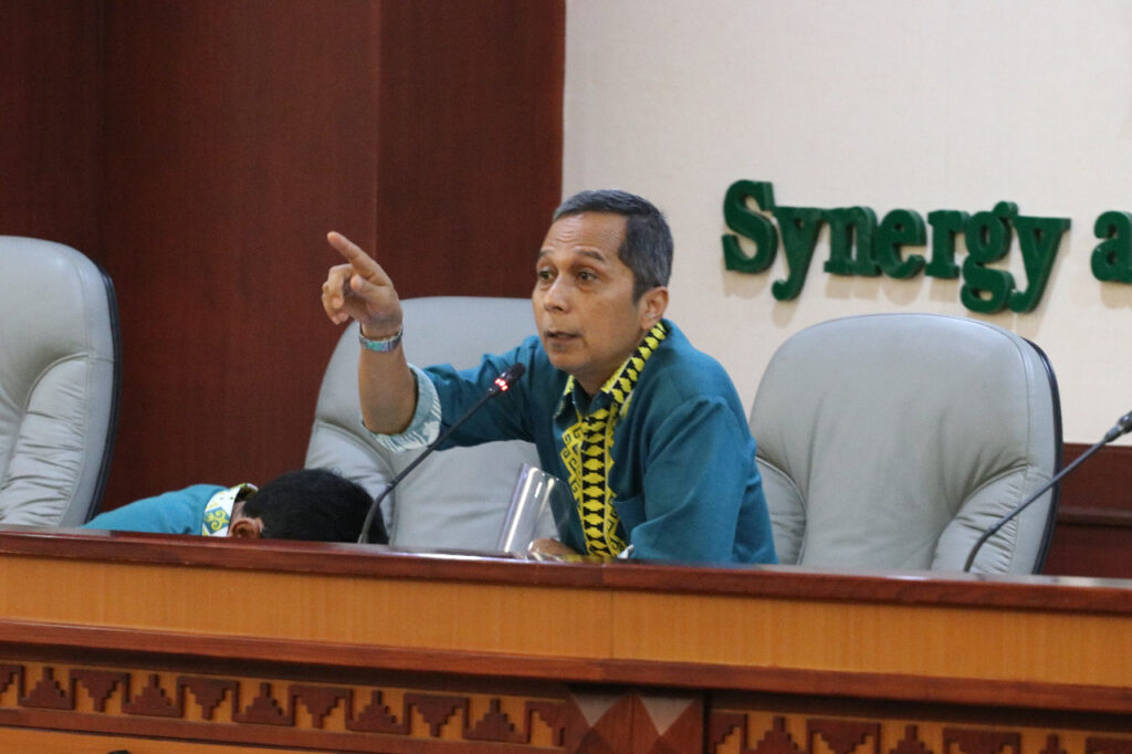 “Kampus harus membuka dialog dan kajian akademik yang ujungnya nanti antara mahasiswa dan pakar duduk bersama dan mengajukan yudisial reviu. Hal itu bertujuan untuk menyikapi fenomena yang terjadi,” tegas Rektor Unila Prof. Dr. Karomani, M.Si., di sela-sela pertemuan. [Humas/Angel]