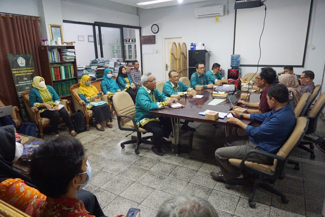 (Unila): Jurusan Perikanan dan Kelautan Fakultas Pertanian (FP) Universitas Lampung (Unila) gelar pertemuan dengan Fakultas Perikanan dan Ilmu Kelautan Universitas Jenderal Soedirman (FPIK Unsoed) dalam rangka inisiasi kerja sama peningkatan pencapaian indikator kinerja utama (IKU) dan program Merdeka Belajar Kampus Merdeka (MBKM), di ruang kerja Dekan FP Unila, Kamis, 20 Oktober 2022.