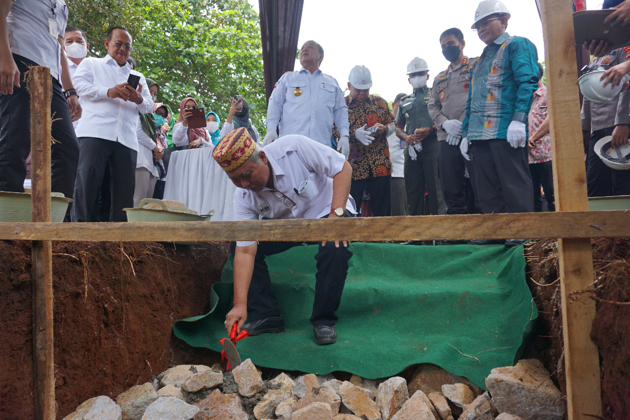 (Unila): Plt. Rektor Universitas Lampung (Unila) Dr. Mohammad Sofwan Effendi, M.Ed., bersama Gubernur Lampung Arinal Djunaidi, meletakkan batu pertama (groundbreaking) pembangunan Gedung Pusat Kajian Cassava, Kelapa Sawit, dan Tebu, Fakultas Pertanian (FP) Unila, Rabu, 16 November 2022.