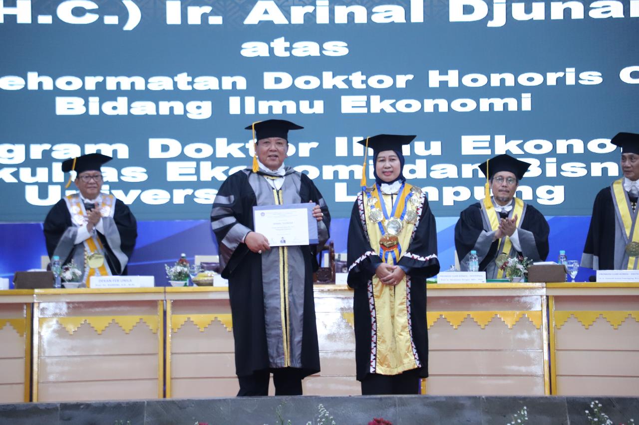 Ini merupakan momen bersejarah bagi Unila untuk pertama kalinya memberikan penghargaan Doktor H.C. kepada Arinal Djunaidi dari Program Doktor Ilmu Ekonomi Fakultas Ekonomi dan Bisnis Universitas Lampung.