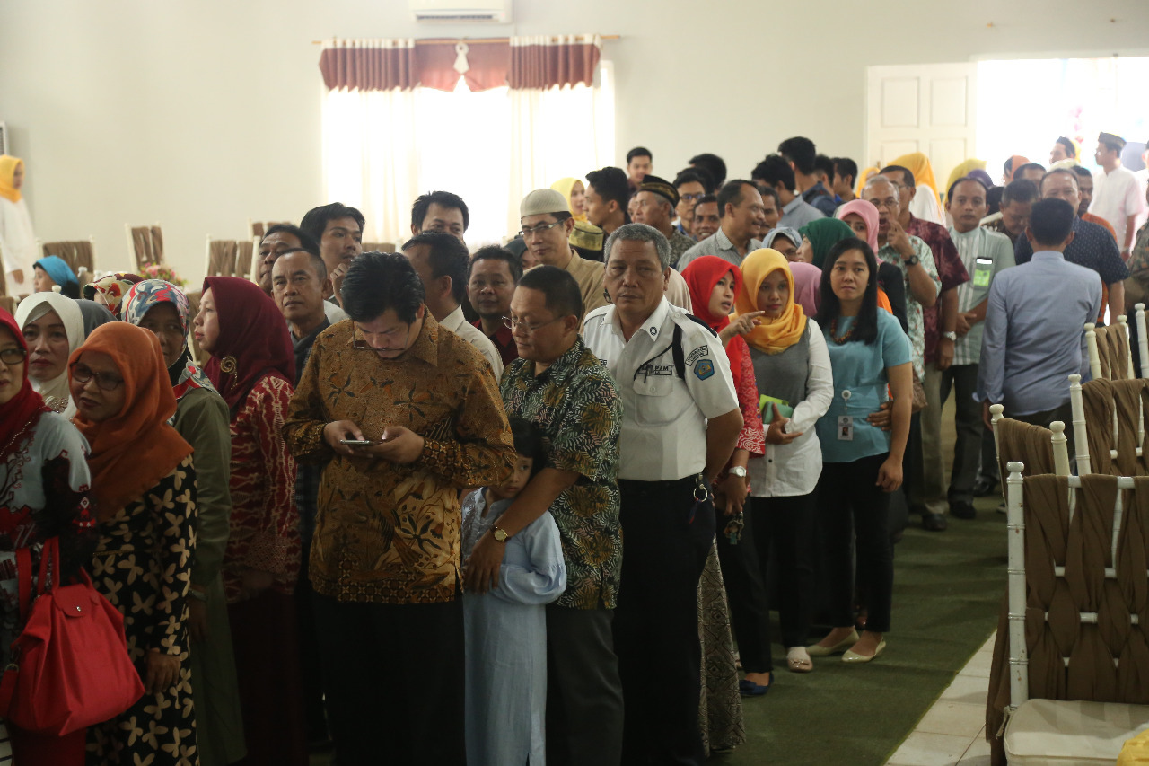 KELUARGA Besar Universitas Lampung (Unila) menggelar halalbihalal dan silaturahmi di Aula Fakultas Pertanian pada pekan kedua hari kerja, tepatnya Selasa (11/7/2017). Dengan mengusung tema “Menjalin Kebersamaan Dalam Bingkai Keragaman”, acara rutin tahunan ini berlangsung hikmat.