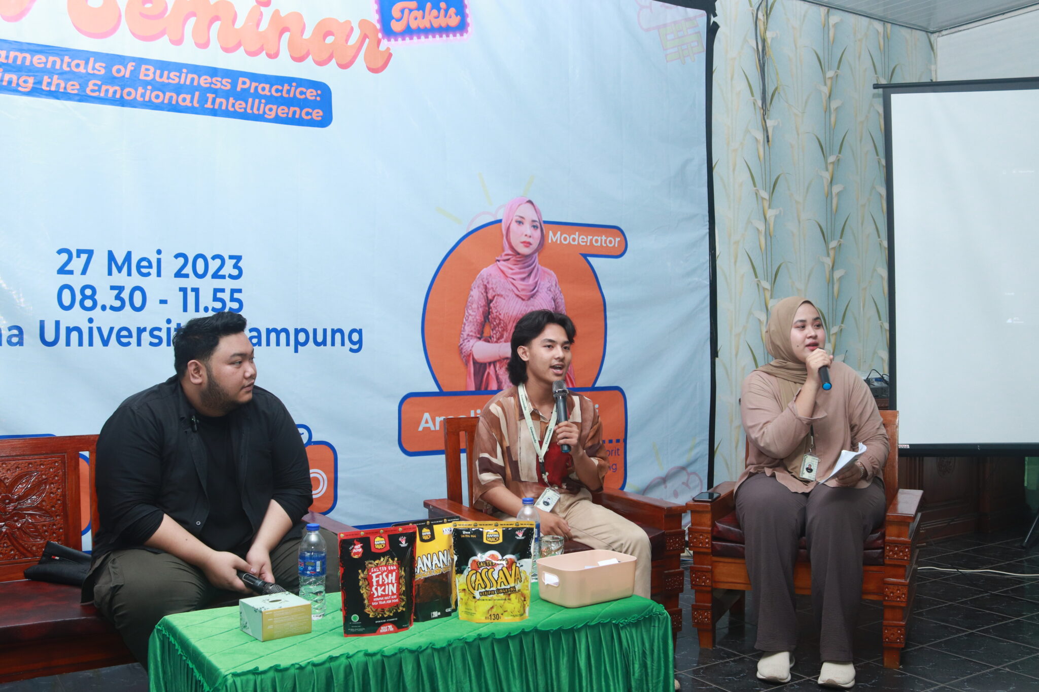 (Unila): Himpunan Mahasiswa Jurusan Ilmu Komunikasi (HMJ Ikom) Universitas Lampung (Unila) mengadakan Comm Seminar with Takis bertema “Fundamentals of Business Practice Knowing the Emotional Intelligence” pada Sabtu, 27 Mei 2023. Acara ini berlangsung di Wisma Unila dan diikuti 121 peserta.