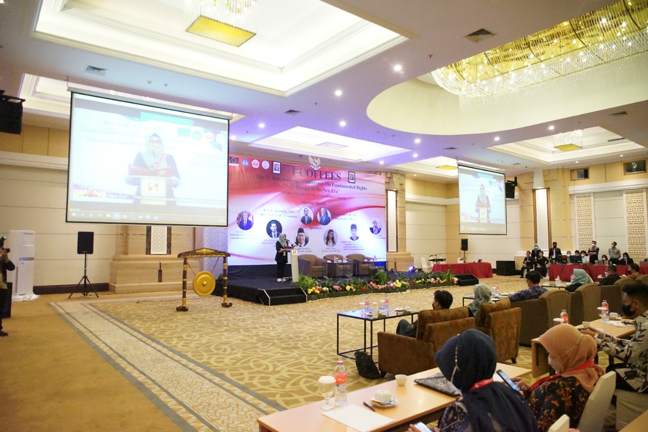 (Unila): Fakultas Hukum (FH) Universitas Lampung (Unila) menggelar konferensi internasional I-Coffees 2021 selama dua hari, 9-10 November 2021, secara daring dan luring di Ballroom Hotel Swissbel, Bandarlampung.