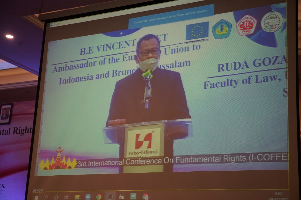 Konferensi ini menghadirkan lima pembicara internasional dan satu pembicara lokal. Antara lain H.E. Vincent Piket – Ambassador of the European Union to Indonesia and Brunei Darussalam, Ruda Gonzalez, Alberto – University of Girona, Spain, Nadirsyah Hosen – Monash University, Australia, Anita Yadav – University of New Delhi, India.
