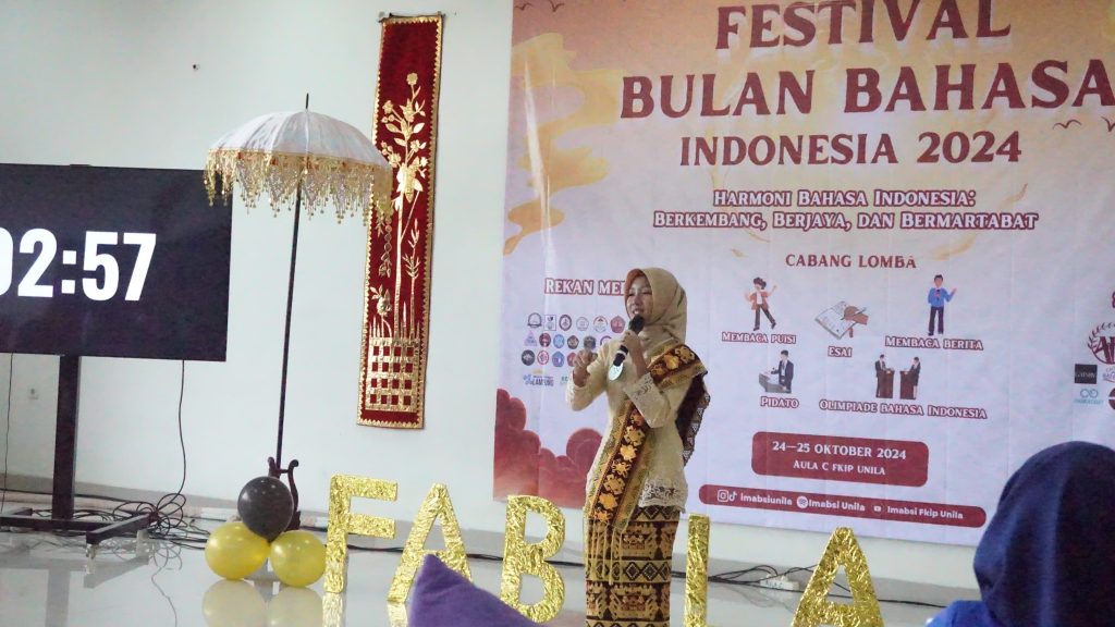 (Unila): Ikatan Mahasiswa Pendidikan Bahasa dan Sastra Indonesia (Imabsi) FKIP Universitas Lampung (Unila) menyelenggarakan Festival Bulan Bahasa Indonesia (Fabula) 2024. Kegiatan dibuka di aula Gedung C FKIP Unila, pada Kamis, 24 Oktober 2024.